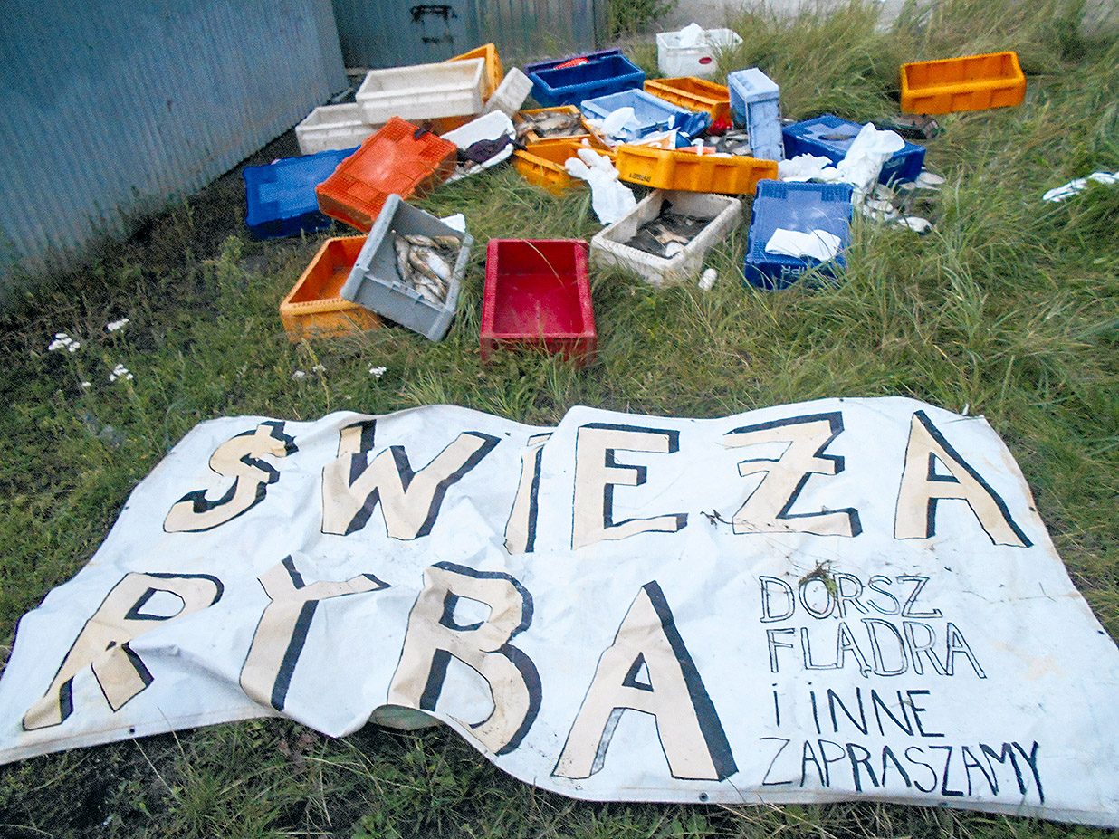 Oprócz ryb wyrzucono tu także akcesoria potrzebne do ich sprzedaży, m.in. fartuchy, rękawice, kalkulator, zeszyty, pisaki i cennik sprzedaży, a także 30 skrzynek oraz wagę (wartości ok. tysiąc złotych!) i baner „Świeża ryba”. Dochodzenie w tej sprawie prowadzi Policja.