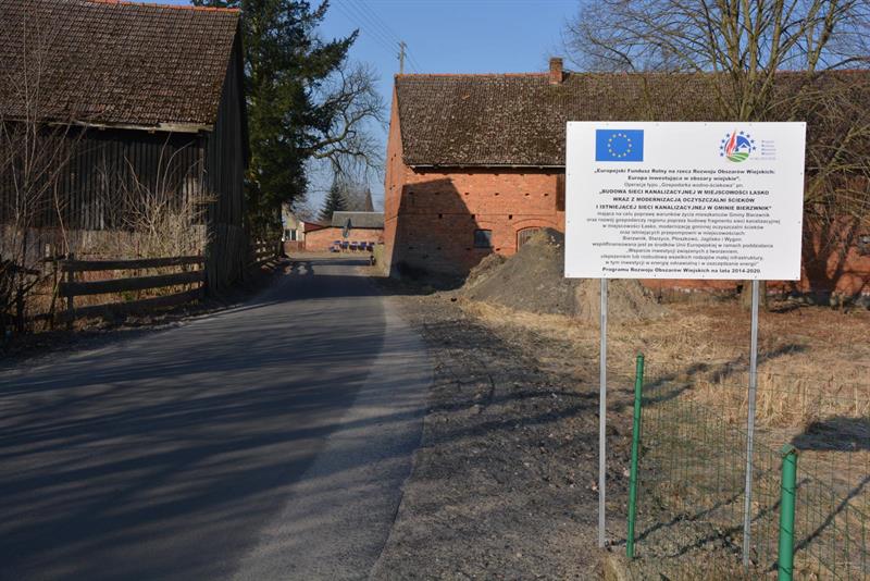 Na zdjęciu: Zakończono budowę sieci kanalizacyjnej w miejscowości Łasko wraz z modernizacją oczyszczalni ścieków i istniejącej sieci kanalizacyjnej w gminie Bierzwnik PROW 2014-2020. Gmina skorzystała z pierwszej edycji programu.