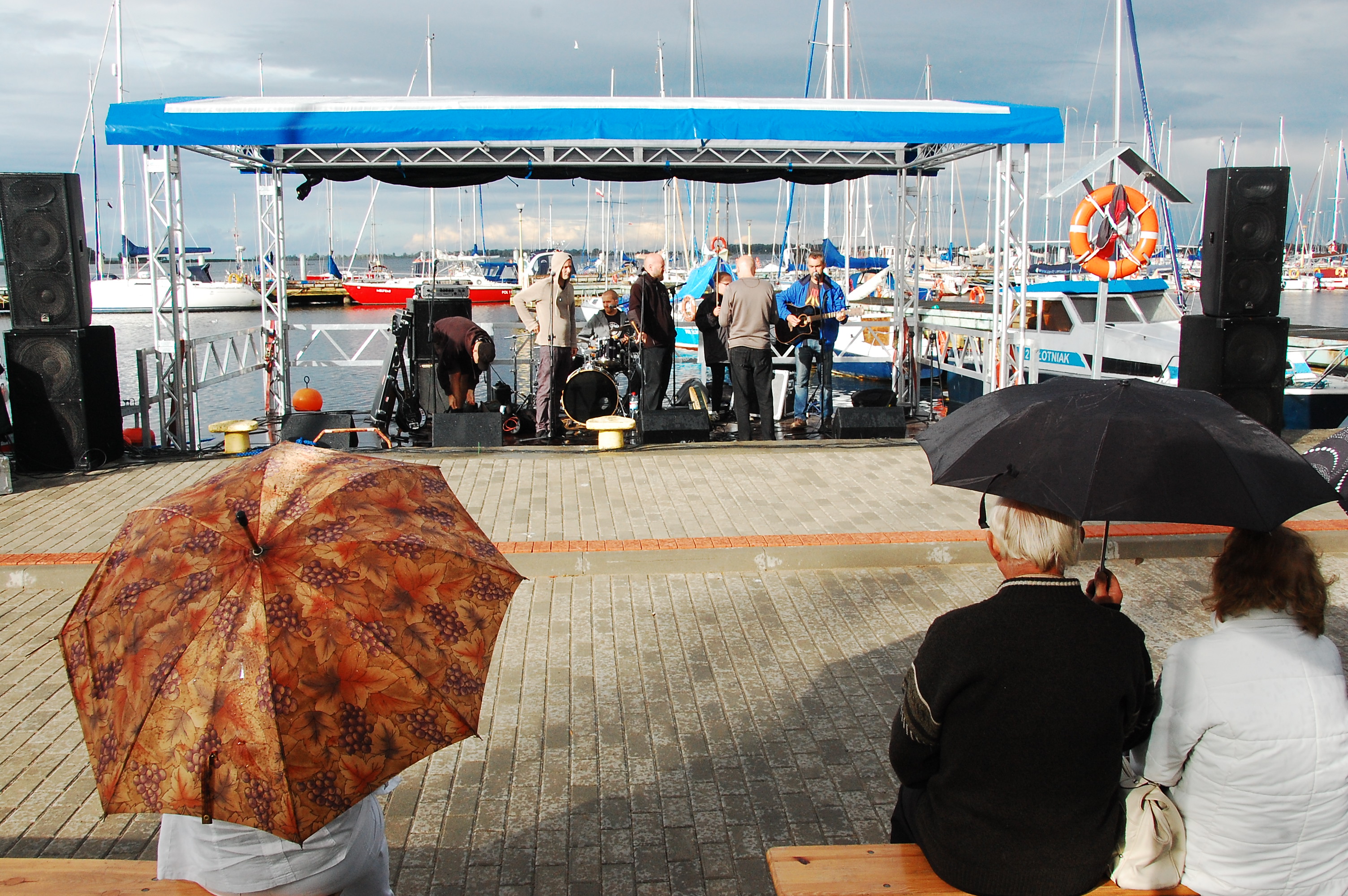 Na specjalnie przygotowanej pływającej scenie w Centrum Żeglarskim grał i śpiewał zespół szantowy „Stary Szmugler”. Utwory podobały się, chociaż siąpił drobny deszcz i część nielicznej publiczności skryła się pod parasolami. W tej żeglarskiej scenerii oryginalnie wypadły szanty „Wściekłe morze” i „Hej bracia”.