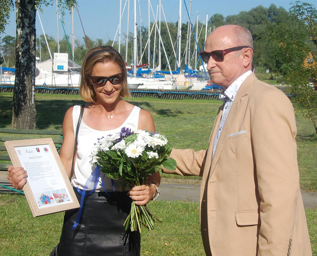 Z kolei w SEJK Pogoń było garden party, czyli przyjęcie na powietrzu. Był szampan, gorące danie, kanapki, napoje i moc kwiatów, którymi obdarowano mistrzynię. W tym spotkaniu uczestniczyła mama Agnieszki - Joanna, a od prezesa Zbigniewa Zalewskiego otrzymała list gratulacyjny. Gratulacji złożył także komandor klubu Marek Czaja i niemal wszyscy obecni.