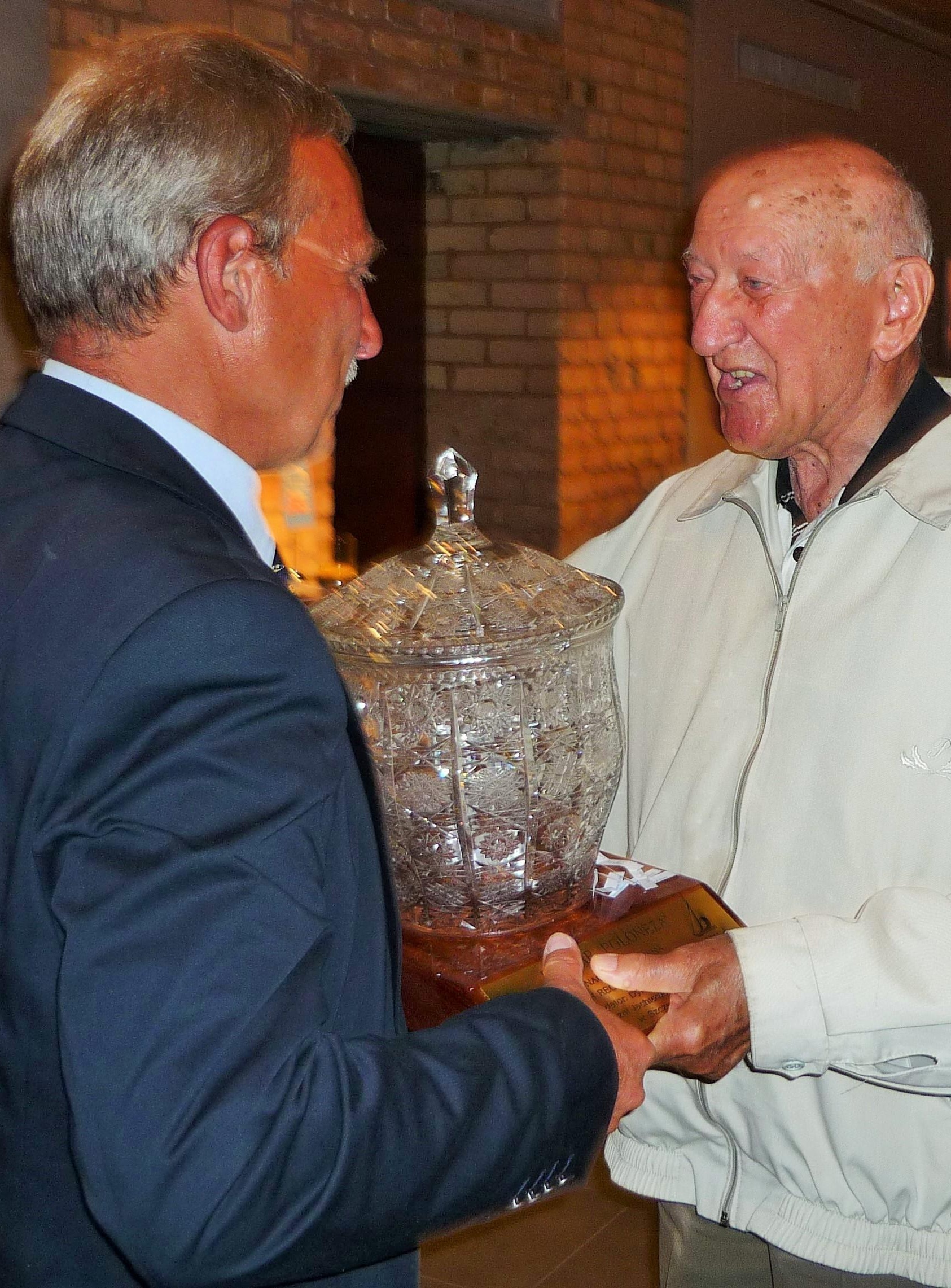 Na zdjęciu: Edmund Bąk wręcza Markowi Lewensteinowi Puchar Poloneza za najszybsze pokonanie trasy Regat Samotnych Żeglarzy na Bałtyku.
