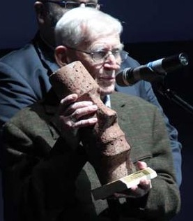 Żeglarz otrzymał od marszałka województwa pamiątkowy zegar w kształcie koła sterowego z dedykacją: Za całokształt osiągnięć żeglarskich z gratulacjami i najlepszymi życzeniami.