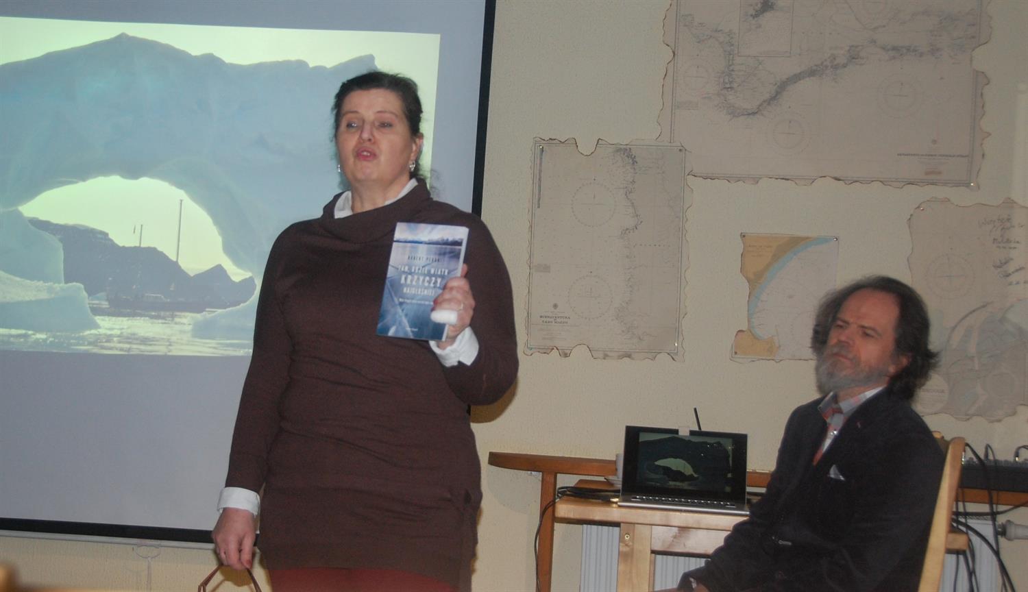 Na zdjęciu: Halina i Andrzej Górajkowie opowiadają o rejsie na Grenlandię. W tle góry lodowe o niezwykłym kształcie.