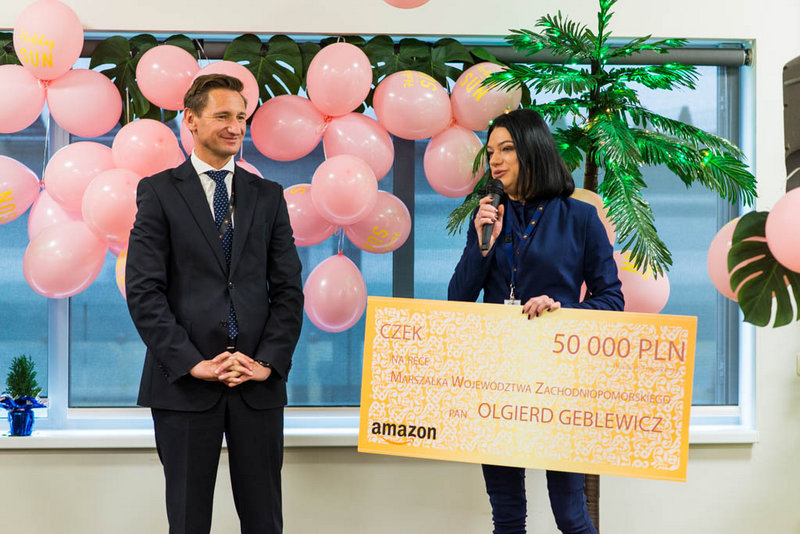 Pracownicy Amazon w Kołbaskowie wyróżnieni zostali za wzorowe zaangażowanie we współtworzenie bezpiecznego miejsca pracy. Natomiast przedstawiciele firmy przekazali marszałkowi województwa czek o wartości 50 tysięcy złotych na wsparcie inicjatyw mieszkańców regionu. Pieniądze te trafią do pogotowia ratunkowego.