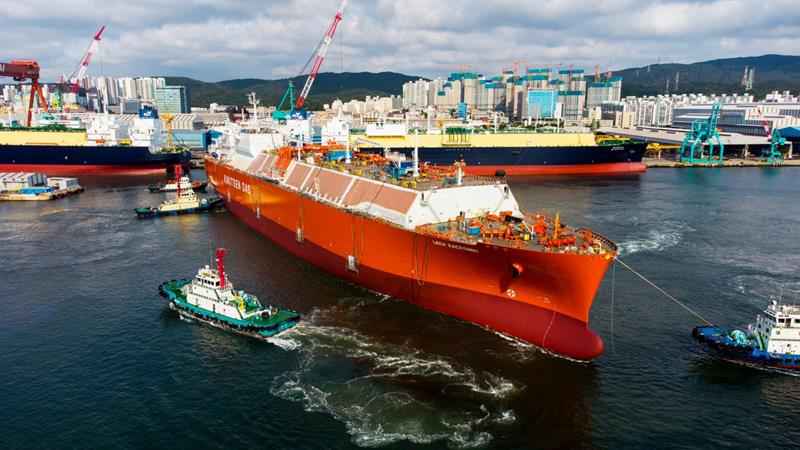 W południowokoreańskiej stoczni Hyundai Heavy Industries 4 czerwca zwodowano pierwszy z gazowców LNG, które będą eksploatowane przez PGNiG w długoterminowym czarterze. Fot. Knutsen