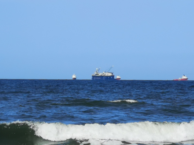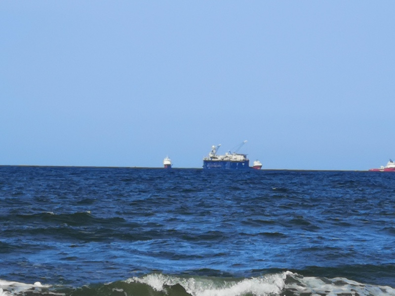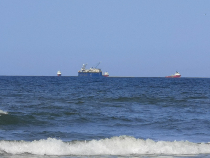 Dwa dni temu stał ok. 6 km od celu, a teraz, z uwagi na spokojne morze, układanie rur na dnie trwa coraz szybciej. Przypomnę, że ostatni 1600-metrowy odcinek zostanie wciągnięty na brzeg za pomocą specjalistycznej wciągarki, która jest już zamontowana na stacji brzegowej.