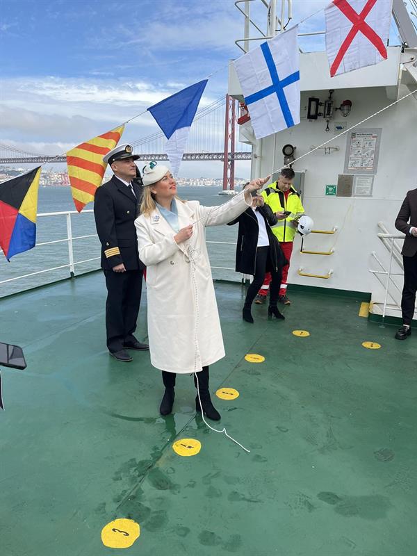 Gdy masowiec „Jamno” zawitał do stolicy Portugalii – Lizbony w celu wyładunku słonecznika, armator skorzystał z dobrej pod względem logistycznym lokalizacji i postanowił zorganizować tradycyjną już uroczystość nadania imienia statkowi.