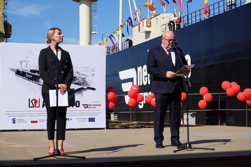 Matką chrzestną doku została Joanna Chmielnicka, dyrektor ekonomiczny Net Marine Group. W uroczystości wzięli udział m.in. przedstawiciele władz samorządowych, administracji morskiej, wielu firm z branży oraz posłowie.