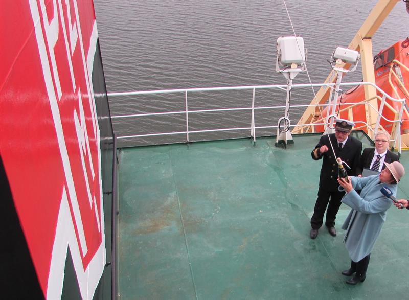 Matka chrzestna E. Majchrowicz rozbiła o komin jednostki butelkę szampana za pierwszym razem, co dobrze wróży statkowi oraz jego przyszłym załogom. Nieodłącznym elementem chrztu jest ceremonia poświęcenia – tej w Policach dokonał ks. Stanisław Flis, diecezjalny duszpasterz ludzi morza.