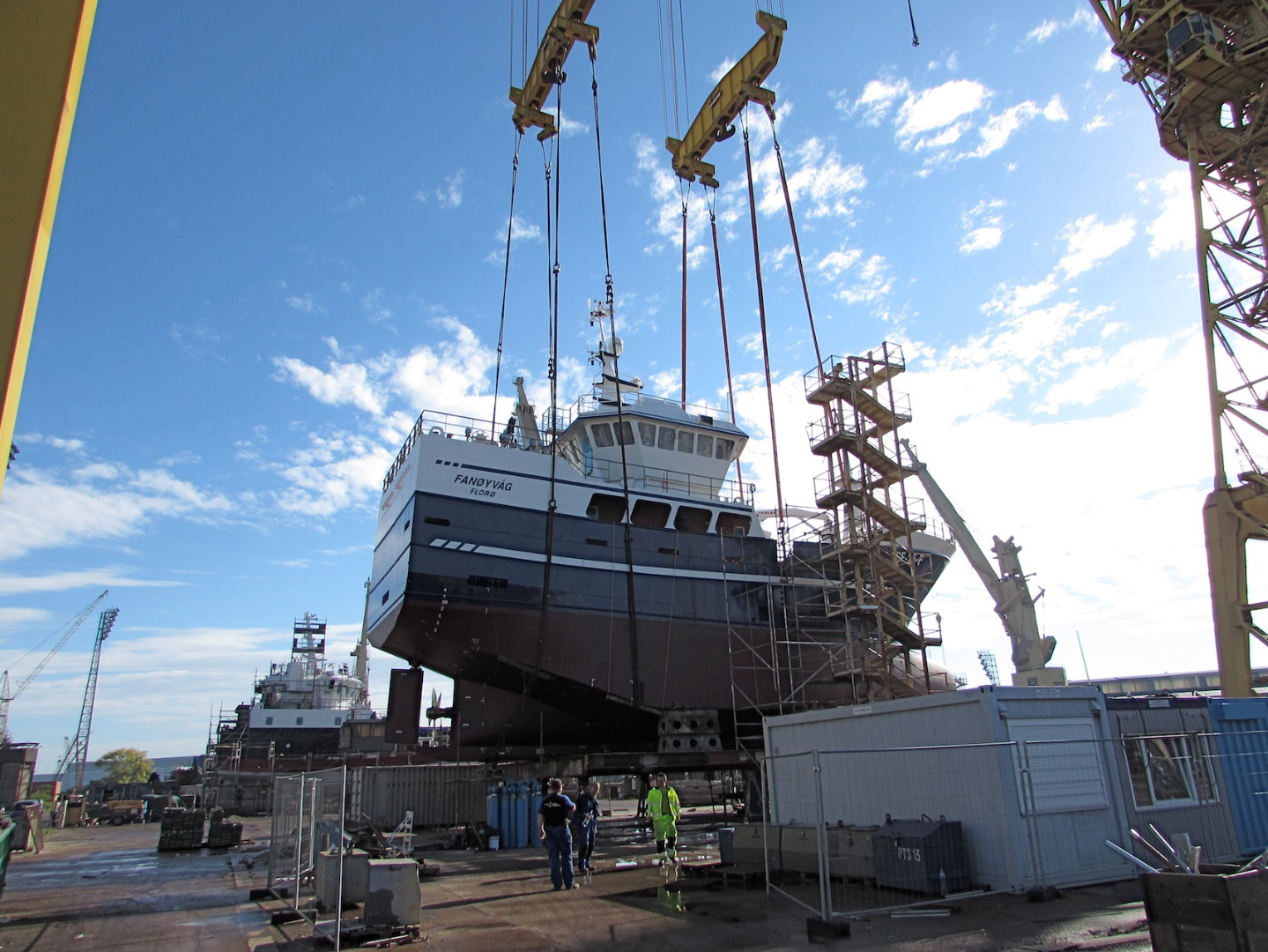 W czwartek kuter „Fanøyvåg” przeszedł wodowanie techniczne (m.in. sprawdzano szczelność). Zanim trafił do wody, został podniesiony i przesunięty za pomocą suwnicy w ośrodku pochylniowym „Wulkan” dawnej Stoczni Szczecińskiej, a obecnie Szczecińskiego Parku Przemysłowego. Później wrócił na poprzednie miejsce. Właściwe wodowanie odbędzie się w najbliższych dniach.