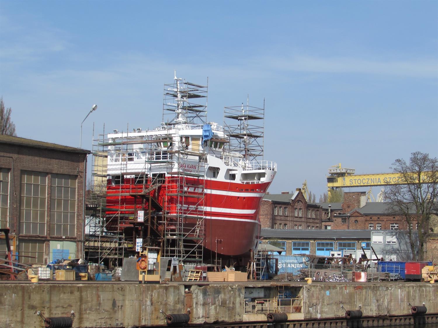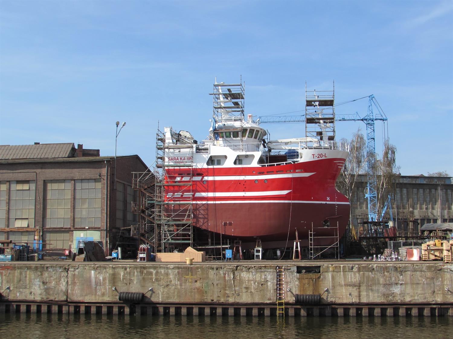 Niewielka jednostka na nabrzeżu Finomaru w Szczecinie to statek rybacki m/v „Sara Karin”, zbudowany dla armatora norweskiego o tej samej nazwie. Wykonawcą jest świnoujska spółka Poltramp Yard.