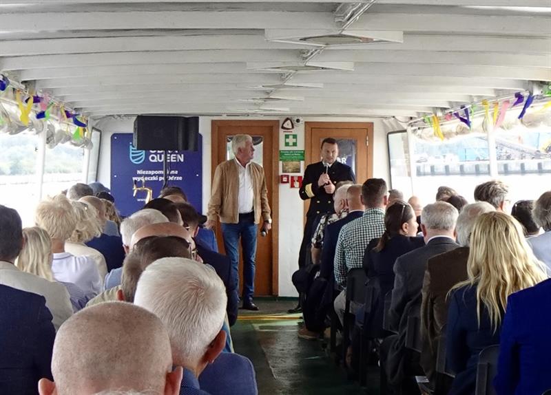 Na początku rejsu Cezary Sylwestrzak, przewodniczący Rady zachodniopomorskiego oddziału KIGM, przeczytał przesłanie sekretarza generalnego IMO Arsenia Domingueza.