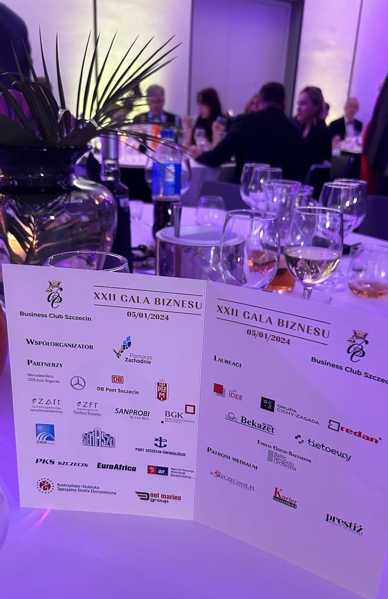 W hotelu Courtyard by Marriot w Szczecinie odbyła się w piątek, 5 stycznia 2024 r. XXII Gala Biznesu, impreza organizowana od lat przez Business Club Szczecin we współpracy z Województwem Zachodniopomorskim. W tym roku laureatami Nagród Gospodarczych Business Club Szczecin zostały firmy: Idee, Bekazet, Tietoevry, Redan i Grupa Cichy-Zasada.