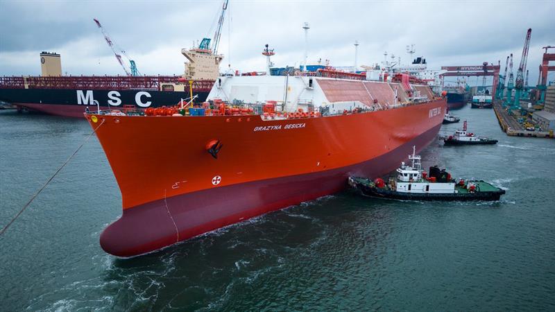 Kolejny etap budowy gazowców na potrzeby Polskiego Górnictwa Naftowego i Gazownictwa został zakończony. W południowokoreańskiej stoczni Hyundai Heavy Industries w Ulsan zwodowano statek o imieniu „Grażyna Gęsicka”.