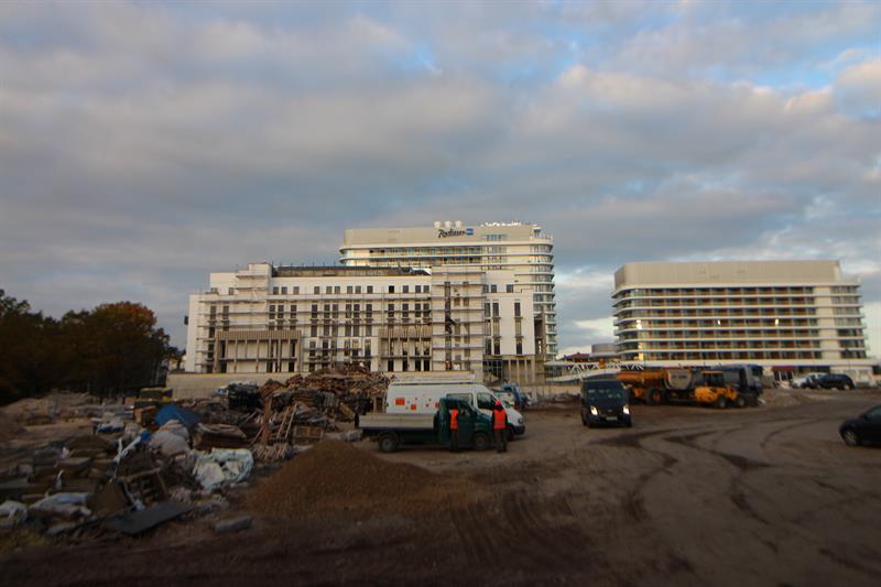 Budynek z ukończoną fasadą już stoi i jak zapowiada inwestor – nie będzie dalszych zmian w krajobrazie. Obecnie trwają prace nad wnętrzem tego hotelu przy plaży z minimum 167 pokojami z widokiem na morze. Nowy Hilton będzie mógł pochwalić się spa, salą fitness i siłownią, jak również restauracjami oraz barami w lobby i na dachu. Natomiast goście będą mieli również dostęp do już działającego aquaparku Baltic Park Molo, w którym znajduje się pięć basenów oraz różne atrakcje rodzinne i rekreacyjne, takie jak: zjeżdżalnie, fala do surfingu, sauny czy tężnia.