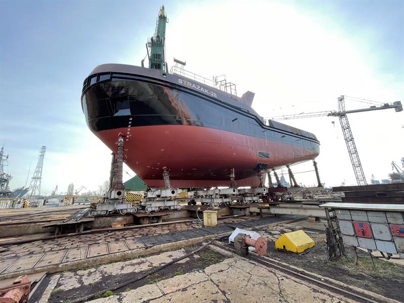Nowo budowany statek pożarniczy „Strażak-28” opuścił właśnie stoczniową halę. Jeszcze w tym roku dołączy do floty statków Zarządu Morskich Portów Szczecin i Świnoujście SA. W najbliższym czasie kadłub jednostki zostanie połączony z nadbudówką. Ze względu na brak możliwości montażu całości w hali, ta część prac zostanie wykonana na zewnętrznym placu.