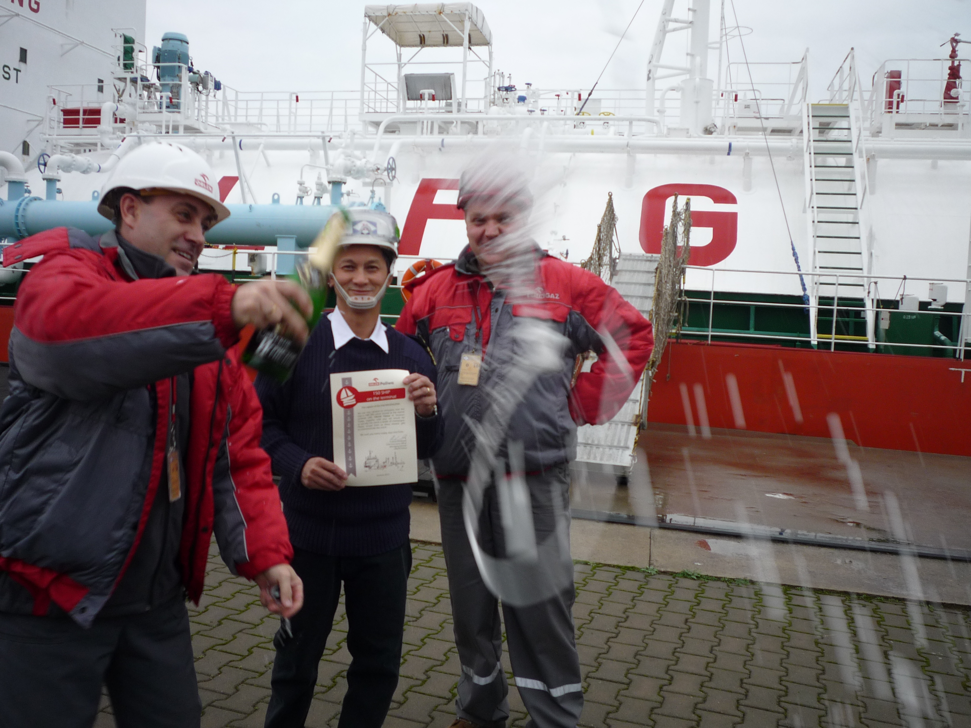 Na początku grudnia do Morskiego Terminalu Gazu Płynnego w Szczecinie przypłynął statek „Magdalena” z ładunkiem około 1714 ton propanu. Część gazu została załadowana w norweskim porcie Mongstad, a część w angielskim Immingham. Co ciekawe, propan załadowany w Anglii pochodzi z kawern mieszczących się w obrębie miasta Lincoln. Pływająca pod banderą Hongkongu „Magdalena” była 150. statkiem przyjętym przez szczeciński terminal, należący do spółki Orlen Paliwa (dawniej Orlen Gaz). Z tej okazji kapitan jednostki oraz oficer ładunkowy otrzymali okolicznościowe upominki i dyplomy. Jak poinformował kierownik terminalu Marek Gadyński, wystrzelił też korek od szampana i zadźwięczał terminalowy dzwon. Przypomnijmy, że terminal uruchomiono latem 2009 roku. Do tej pory przyjął już 205 453 ton gazu dostarczonego drogą morską.©℗