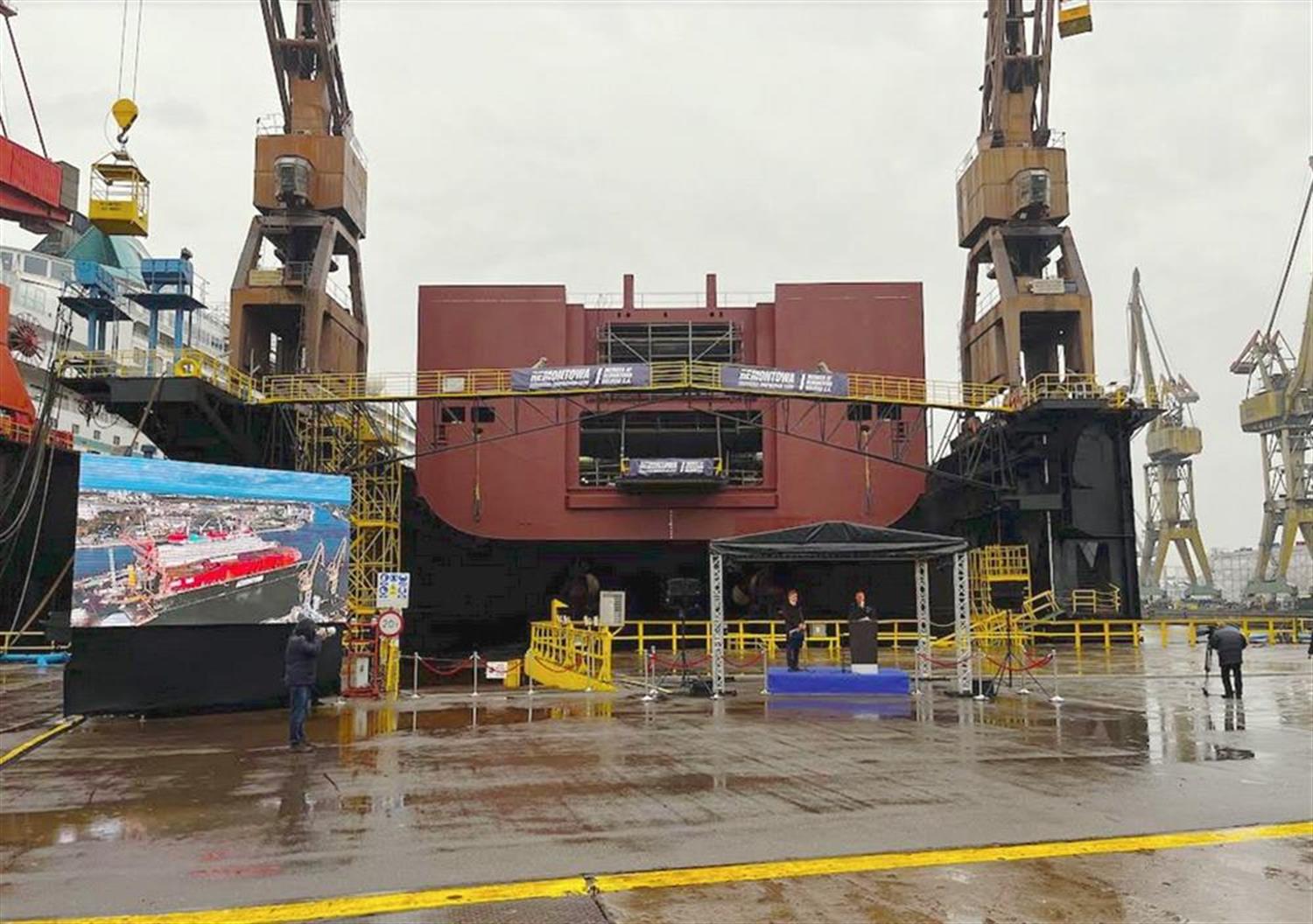 We wtorek w Gdańskiej Stoczni Remontowej zwodowano kadłub pierwszego promu, który będzie pływał w barwach Unity Line. Fot. Waldemar STAWSKI