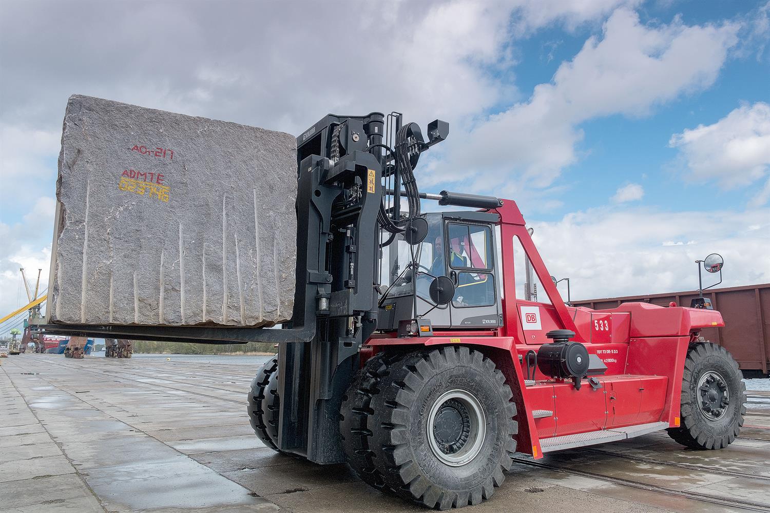 Takie maszyny są tylko trzy w Polsce. Jedną od ubiegłego tygodnia dysponuje spółka DB Port Szczecin. To wóz widłowy typu Kalmar, wyprodukowany przez szwedzką firmę Cargotec. Może podnosić towary ważące do 42 ton.