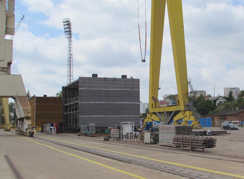 Na placu ośrodka pochylniowego Wulkan Stoczni Szczecińskiej znajdują się trzy duże konstrukcje mające kształt prostopadłościanów. Jak się dowiedzieliśmy, są to kesony, które wykonuje spółka JVP Steel Poland.