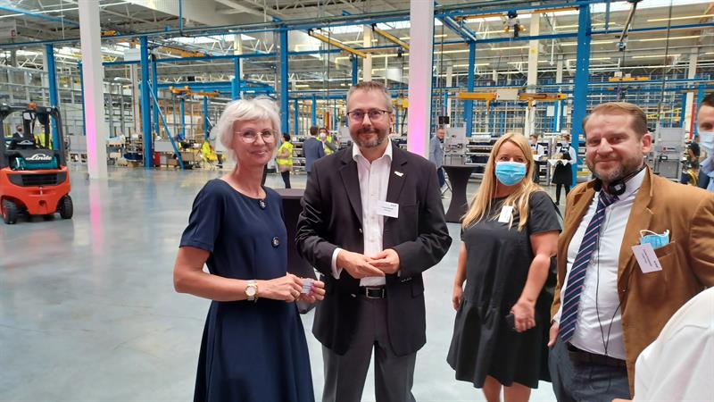 Bramy najnowszego zakładu KION otworzyli Frank Schepp, Senior Vice President Production Unit Counterbalance Trucks oraz Tomasz Maleszka, kierownik zakładu i członek zarządu.