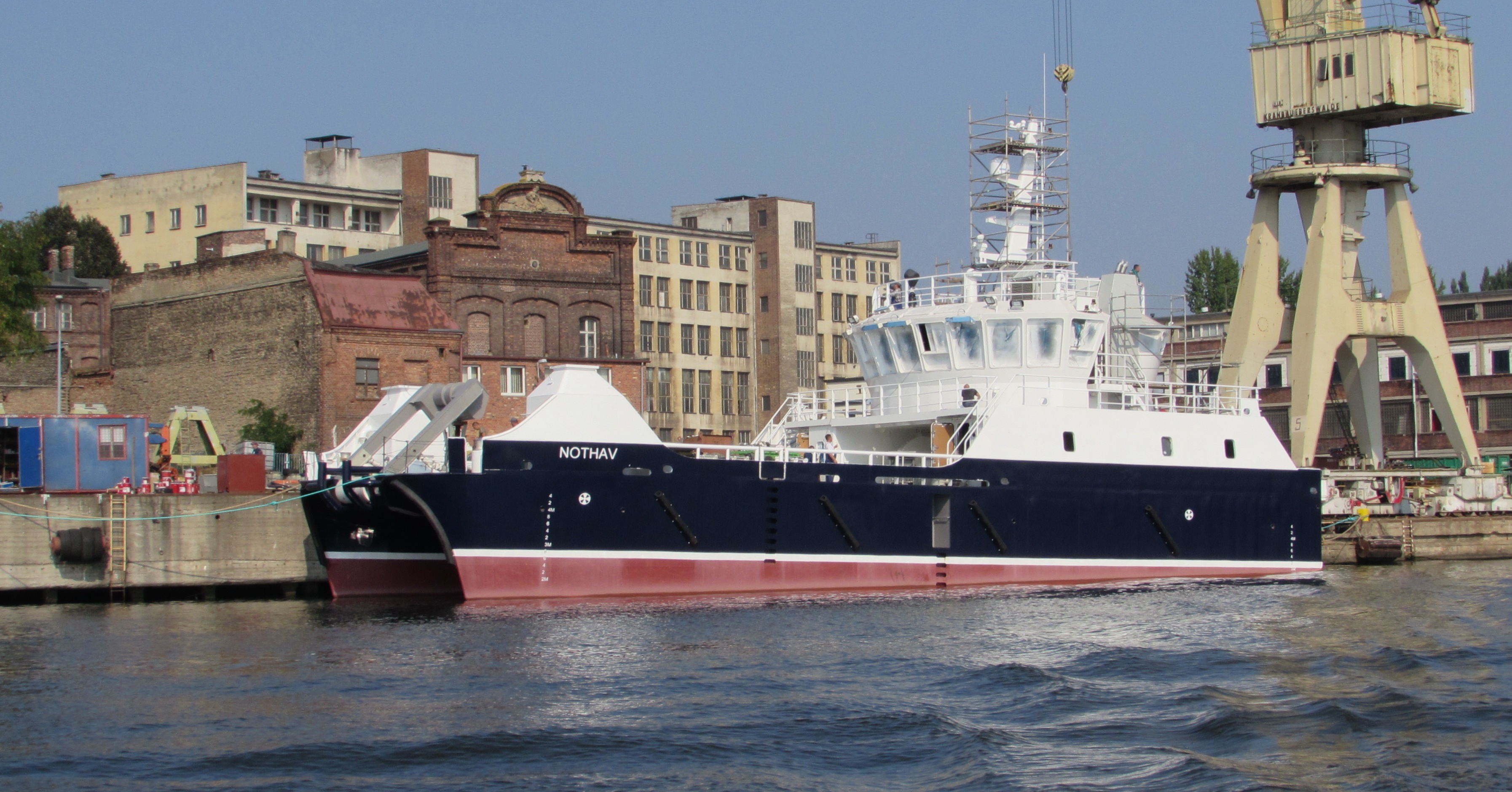W zeszłym roku w Szczecinie firma NSS zbudowała katamaran „Notmann” dla norweskiego armatora, działającego w branży hodowli ryb. Chrzest statku odbył się w grudniu w Norwegii. Jednostka się spodobała i szczecińskiej firmie powierzono produkcję kolejnej, bliźniaczej, która – według zapowiedzi – ma być gotowa jesienią tego roku. Jej nazwa to „Nothav”. Na zdjęciu - nowa jednostka cumuje przy nabrzeżu Arsenał, którym dysponuje spółka Finomar. (ek)