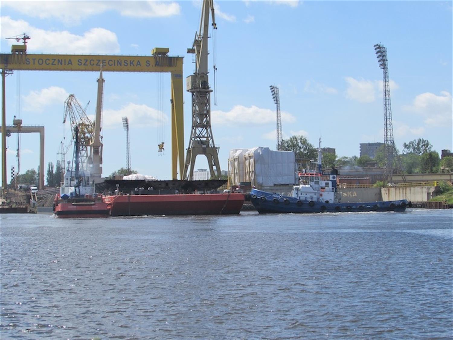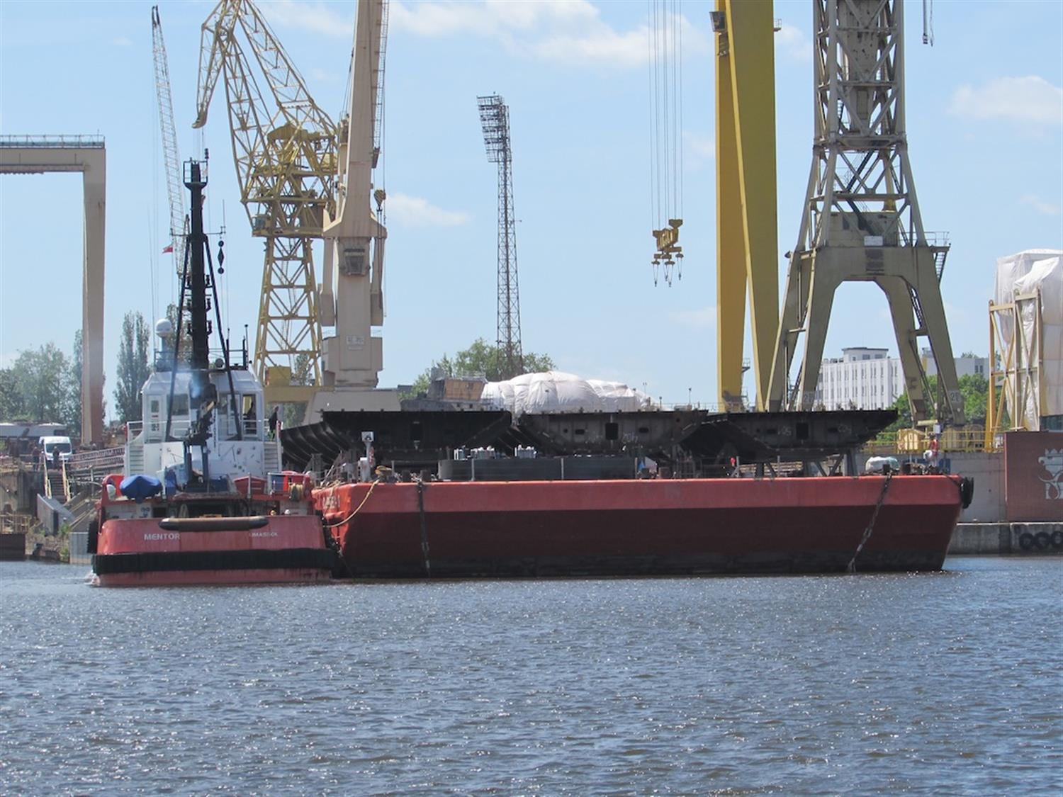 Sześć części mostu, ważących łącznie 656 ton, odpłynęło w minionym tygodniu ze Szczecina do Koege w Danii. Transportem zajęła się szczecińska spółka Marine Crane (reprezentująca szwedzką Marine Group).