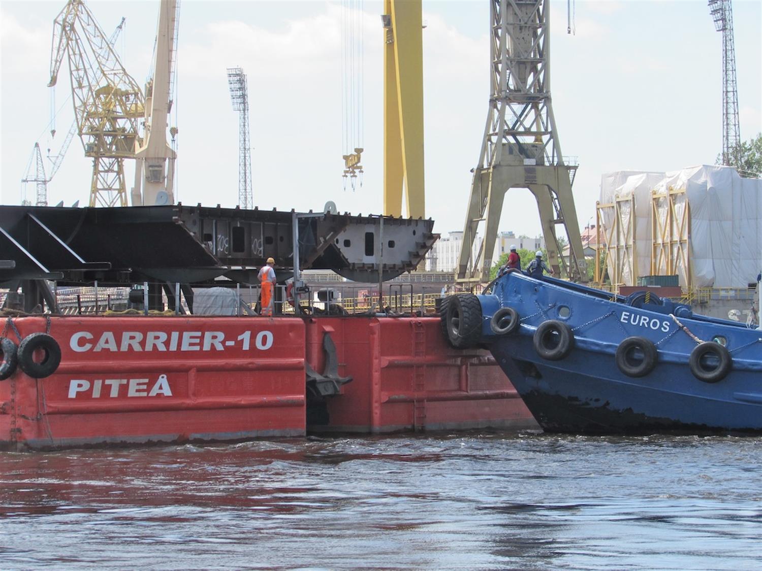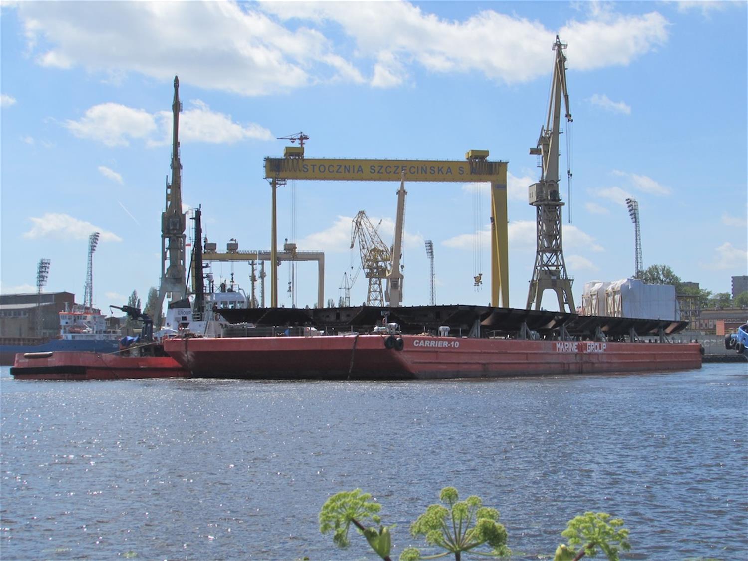 To już trzeci w tym roku przewożony przez nią most. W styczniu transportowała do Norwegii konstrukcję, podobnie jak tę ostatnią, wykonaną przez Montostal Szczecin na terenie Szczecińskiego Parku Przemysłowego. W maju natomiast przywiozła z Gdyni do Szczecina przęsła mostu Cłowego. Wszystkie zadania wykonał duet złożony z pontonu „Carrier-10” i holownika „Mentor”. Przy ostatnim transporcie pomagał holownik „Euros”, a zestaw wychodzący ze Szczecina miał ponad 150 m długości. (ek)