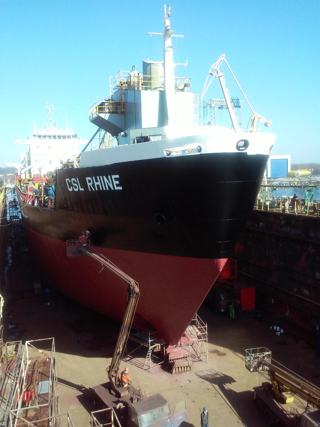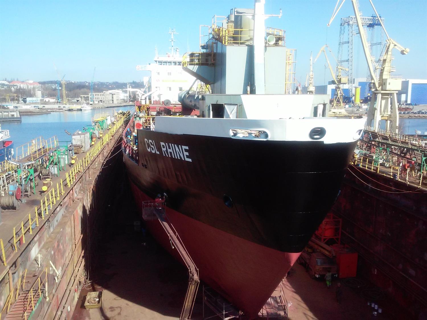 Morska Stocznia Remontowa „Gryfia” po raz kolejny wykonuje zlecenie dla CSL Europe. Tym razem w doku nr 1 w Szczecinie trwają prace na jednostce samowyładowczej „CSL Rhine”.