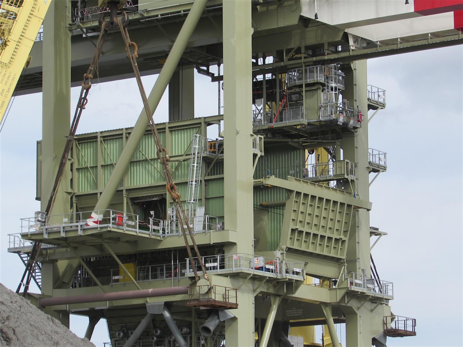 Przenoszenie shipunloadera z pontonu na statek odbyło się w czwartek (3 sierpnia) wieczorem. Obecnie trwają prace (m.in. spawalnicze) związane z mocowaniem ładunku.