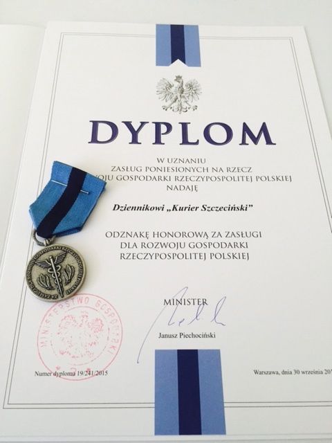 Redakcja "Kuriera Szczecińskiego" została w czwartek wyróżniona Odznaką Honorową za Zasługi dla Rozwoju Gospodarki Rzeczypospolitej Polskiej. Uroczystość odbyła się w Ministerstwie Gospodarki w Warszawie.