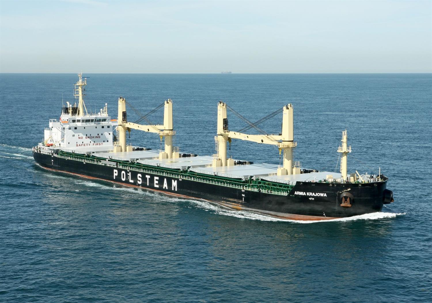 Na zdjęciu: Nowy statek PŻM należy do serii 39-tysięczników, zapoczątkowanej przez widoczny na zdjęciu masowiec „Armia Krajowa”.