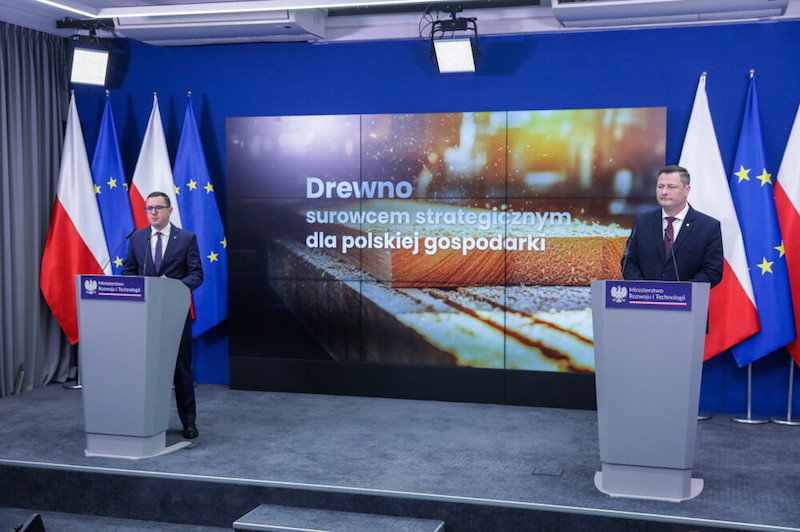Resort rozwoju pracuje nad ustawą, która m.in. określi drewno jako surowiec o strategicznym znaczeniu dla polskiej gospodarki - poinformował w piątek podczas konferencji prasowej szef resortu rozwoju Krzysztof Paszyk. Planowane rozwiązania mają także ograniczyć eksport drewna poza kraje UE.