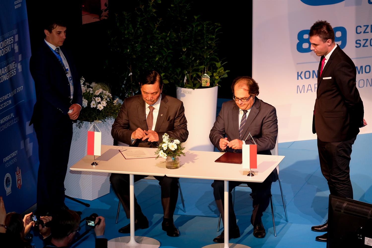 Memorandum o współpracy dotyczącej spraw morskich podpisali w piątek (9 czerwca) w Szczecinie minister gospodarki morskiej i żeglugi śródlądowej Marek Gróbarczyk oraz wicepremier i minister koordynator ds. morskich Indonezji – Luhut Binsar Panjaitan. Wystąpieniami obydwu polityków rozpoczął się drugi dzień obrad 5. Międzynarodowego Kongresu Morskiego.