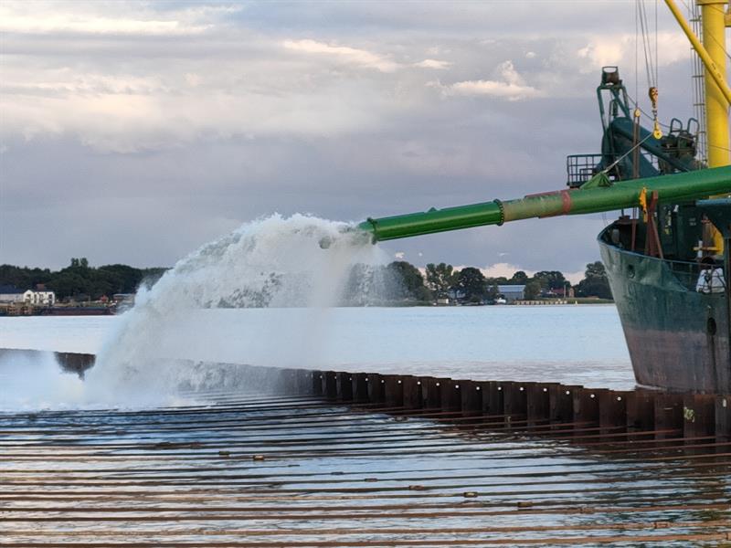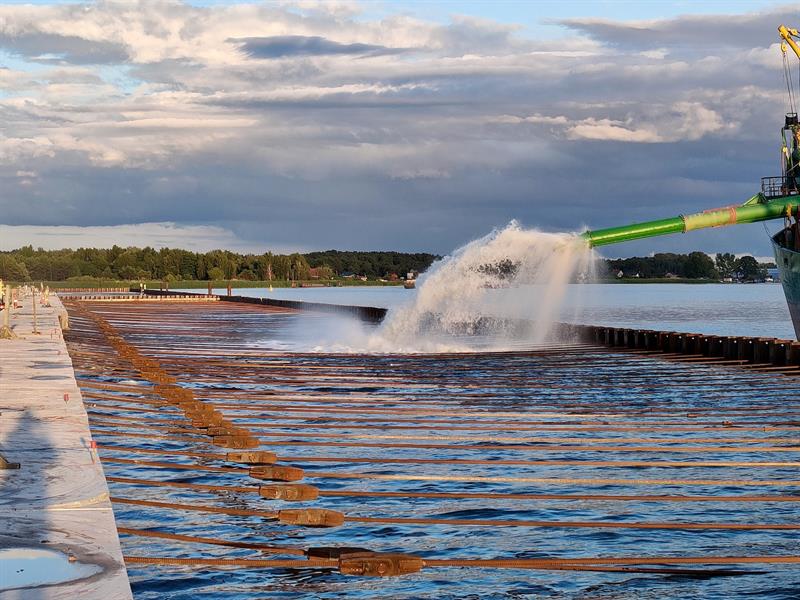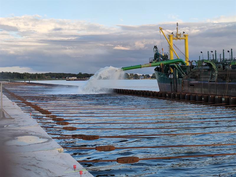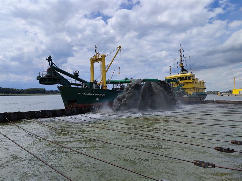 – Zakres prac obejmował wykonanie robót czerpalnych na akwenie podejściowym do nowo budowanego terminalu instalacyjnego w Świnoujściu dla obsługi morskich farm wiatrowych do głębokości 12 m, a także roboty zasypowe za nowo posadowioną ścianką szczelną wzdłuż nabrzeży nr 1 i 2 o długości około 500 m, na powierzchni około 12 500 m kw. – informuje Agnieszka Królikowska z PRCiP. – Wykonano zasyp w ilości 155 500 m sześc. gruntem piaszczystym oraz przetransportowano i odłożono na klapowisku morskim 828 m sześc. gruntu namułowego.