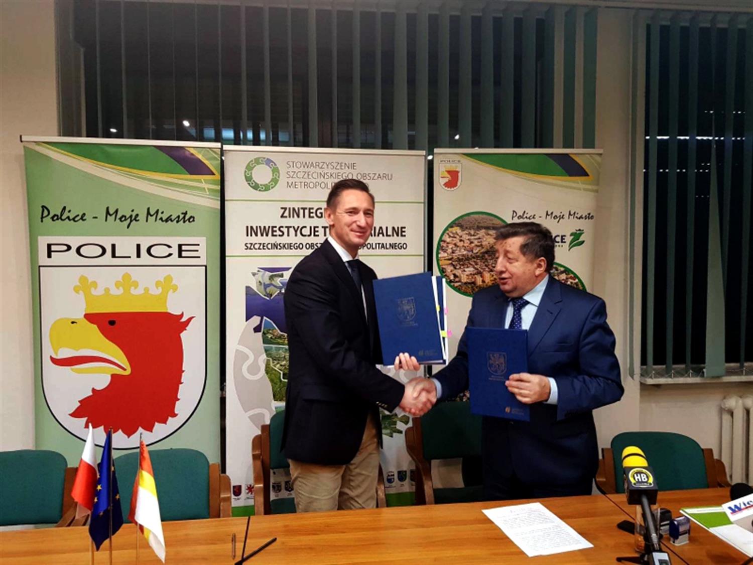 Na zdjęciu: Police dostaną niemal 8 mln zł dofinansowania z RPO. Umowę w tej sprawie podpisali marszałek województwa Olgierd Geblewicz i burmistrz miasta Władysław Diakun.