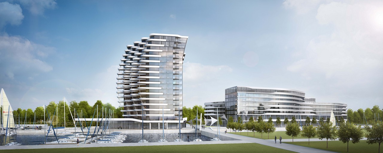 Obok hotelu ma powstać 17 piętrowy apartamentowiec. Oba budynki połączone zostaną podziemnym parkingiem na 888 miejsc postojowych. Cały kompleks będzie nosił nazwę Hot Spring Bay czyli Zatoka Gorących Źródeł, a to dlatego, że w tym miejscu Szczecina pod ziemia płyną gorące źródła co dodatkowo inwestorzy chcą wykorzystać między innymi do ogrzewania obiektów.