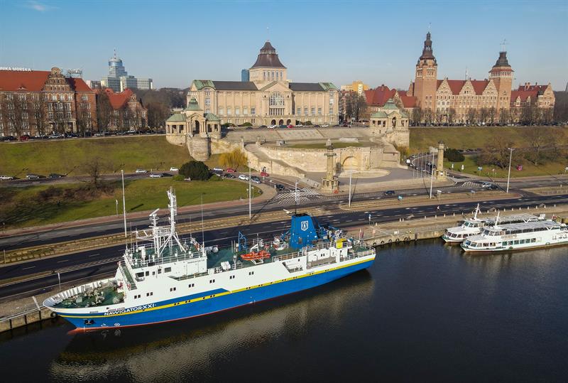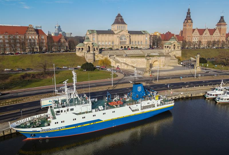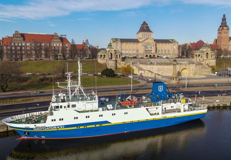 Statek badawczo-szkolny „Nawigator XXI” po przejściu gruntownego remontu w Morskiej Stoczni Remontowej „Gryfia” w Szczecinie wrócił na swoje stałe miejsce cumowania przy bulwarze Chrobrego. Na kominie jednostki pojawiło się nowe logo jej armatora, czyli Politechniki Morskiej.