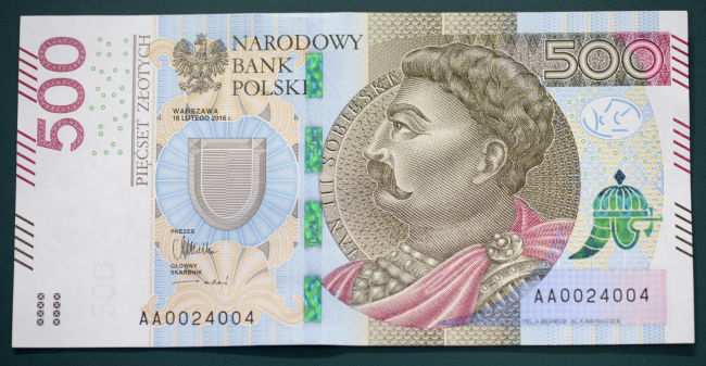 Na zdjęciu: Awers nowego banknotu obiegowego o nominale 500 zł.