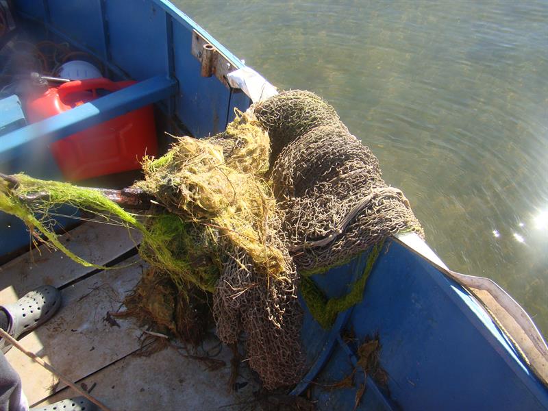 Zerwane na wrakach i innych zaczepach lub zagubione podczas sztormów syntetyczne sieci rybackie przez wiele lat zachowują zdolność do niekontrolowanych połowów. Największe zagrożenie stanowią sieci stawne (nety, mance) i dryfujące pławnice. Zalicza się je do usidlających narzędzi połowowych. Wykonane są z cienkich przędz rybackich lub żyłek stylonowych, dodatkowo barwionych w celu zmniejszenia ich widoczności w wodzie. Zagubione tego typu sieci zagrażają stabilności stad cennych gatunków ryb, takich jak dorsze, łososiowate (łososie i trocie) oraz flądrowate (stornie, gładzice i turboty). Ponadto w oczka porzuconych bądź pozostawionych sieci mogą się zaplątywać nurkujące ptaki oraz ssaki morskie, które giną pozbawione możliwości oddychania. Sieci rybackie zerwane na wrakach to również śmiertelne zagrożenie dla płetwonurków.