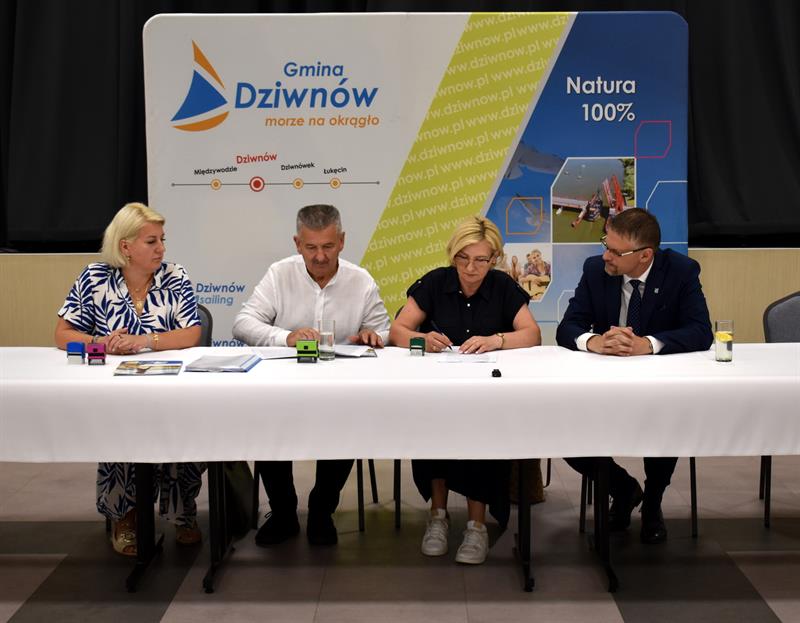 W piątek 25 bm. w dziwnowskim Domu Kultury podpisano umowy pomiędzy Zarządem Portu Morskiego w Dziwnowie a wykonawcą – firmą Przedsiębiorstwo Handlowo-Usługowe „HYDROBUD” Adam Dzik Sp. z o.o na realizację inwestycji pod nazwą: Rozbudowa nabrzeży portowych w Dziwnowie przy moście zwodzonym w formule „Zaprojektuj i wybuduj”. Wartość robót budowlanych, które zostaną zrealizowane w ramach podpisanej umowy, wynosi 6.525.967,95 zł brutto. Dofinansowanie z funduszy zewnętrznych – 5.125.665,00 zł. Termin realizacji: do 11 miesięcy od dnia podpisania umowy, tj. do dnia 25 czerwca 2026 roku. Zadanie będzie obejmowało budowę całkowicie nowego nabrzeża o długości ponad 220 metrów z dodatkową infrastrukturą energetyczną, slipem oraz zjazdem technicznym do wody. Zadanie jest współfinansowane w ramach programu Fundusze Europejskie dla Rybactwa na lata 2021-2027.