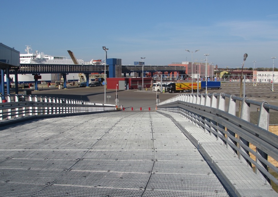 Objęła ona nie tylko budowę nowego nabrzeża pozwalającego na cumowanie i obsługę promów typu ro-pax, ale też galerii pasażerskiej o zróżnicowanej wysokości z dwiema klatkami schodowymi, rękawa pasażerskiego łączącego galerię z promem, estakady samochodowej z ruchomym pomostem bocznym, ruchomego pomostu dziobowo-rufowego i sterowni obsługującej pracę pochylni. Ponadto rozbudowano infrastrukturę drogową parkingów i placów manewrowych.