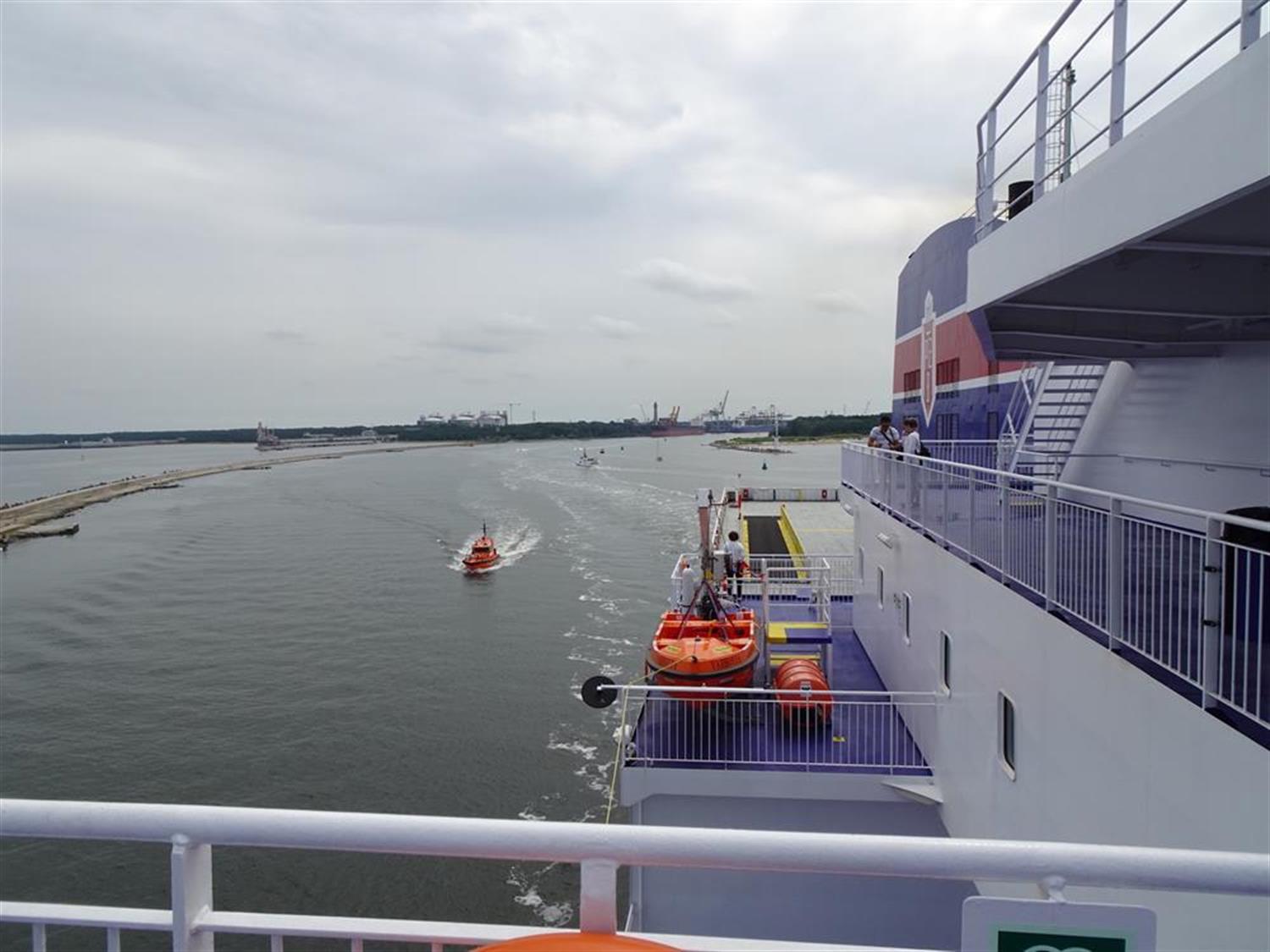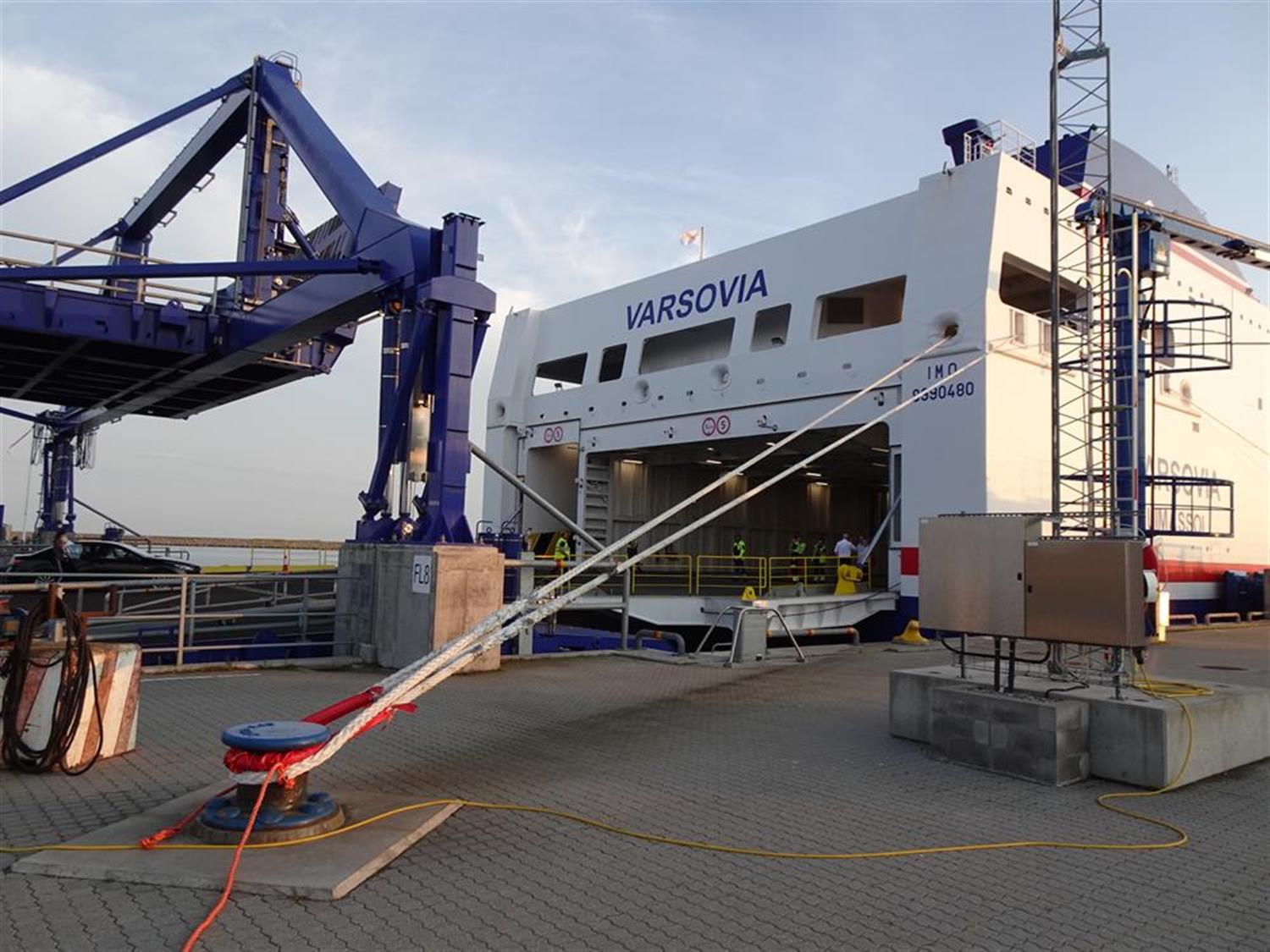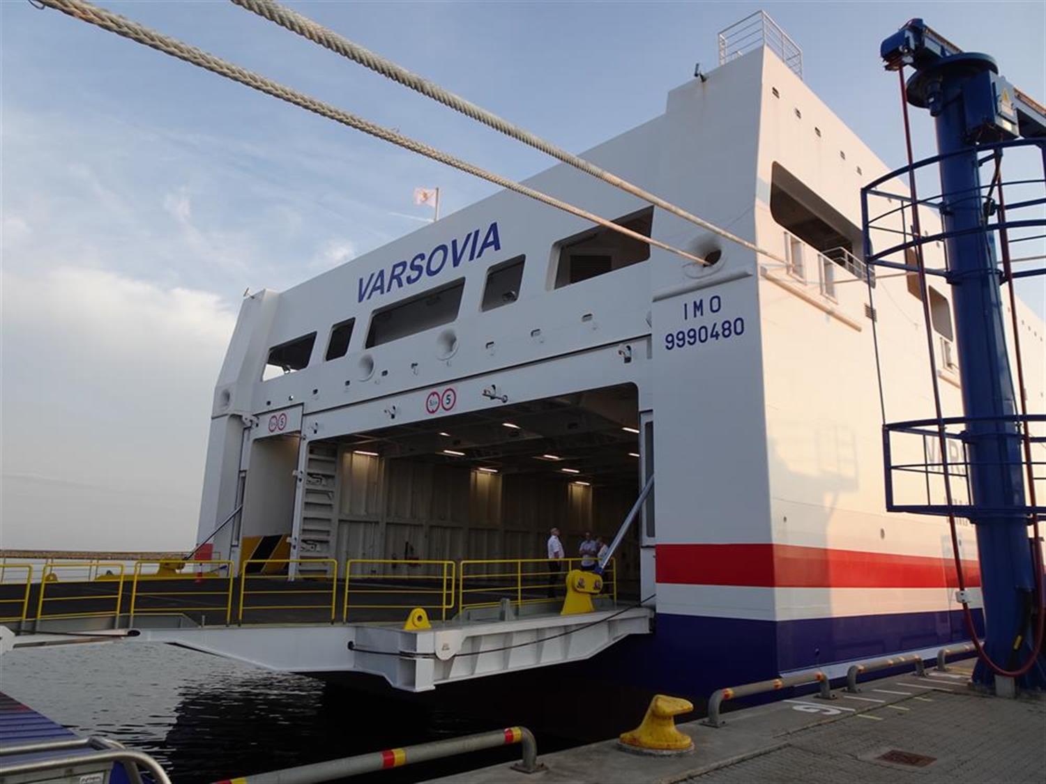 Varsovia wyszła w morze z kilkudziesięciominutowym opóźnieniem. Planowo miała wypłynąć o godz. 12.30. W Ystad powinna być ok. godz. 20.00. To największy prom z najdłuższą linią ładunkową, jaki kiedykolwiek operował we flocie Polferries, a także pierwszy zupełnie nowy od ponad 20 lat. Będzie obsługiwał linię Świnoujście – Ystad, stanowiąc tzw. wahadło dla promu Mazovia.