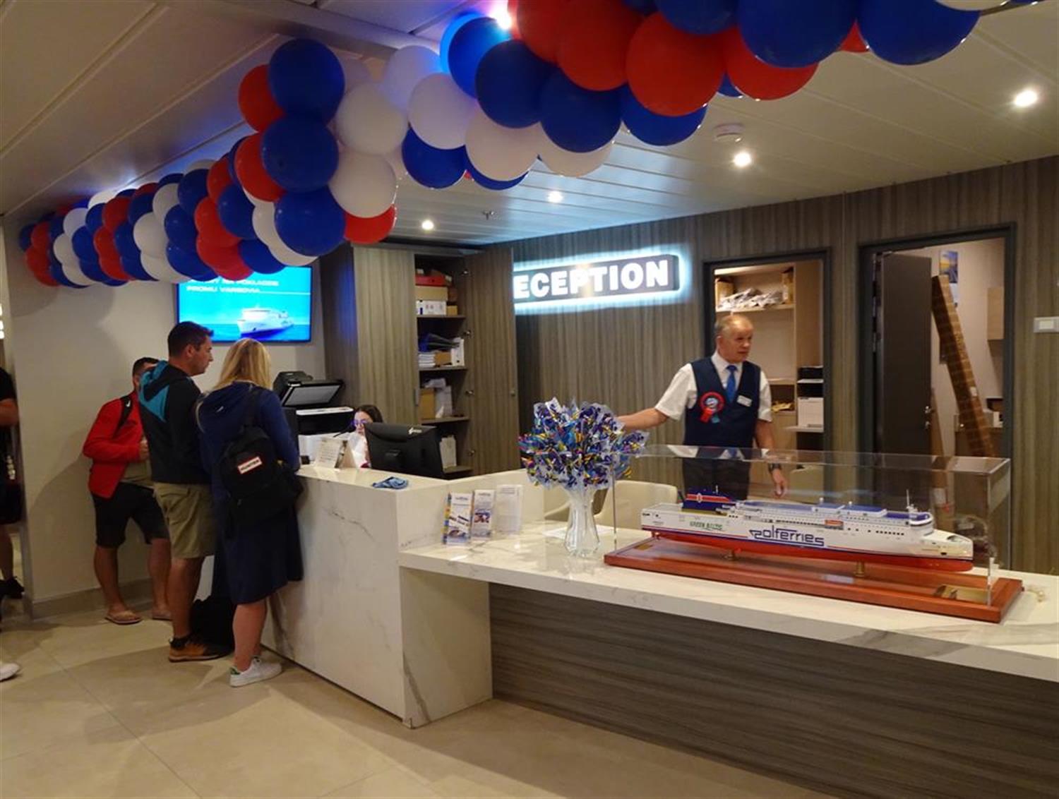 Pierwszych pasażerów na pokładzie powitał w sobotę kpt. żeglugi wielkiej Wojciech Grajek. Dla podróżnych przygotowano upominki – pamiątkowe koszulki, kubeczki i wiatraczki.