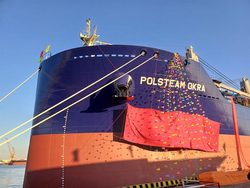 W chińskiej stoczni Shanhaiguan w Qinhungdao (prowincja Hebei) 16 stycznia odbyło się uroczyste przekazanie najnowszego statku Polskiej Żeglugi Morskiej – m/s „Polsteam Okra”. To jednostka o nośności 36 880 ton zaliczana do klasy tzw. jeziorowców (laker-max). Podczas przekazania masowca odbył się również jego chrzest. Matką chrzestną została długoletnia pracownica PŻM Mirosława Ruchniak.