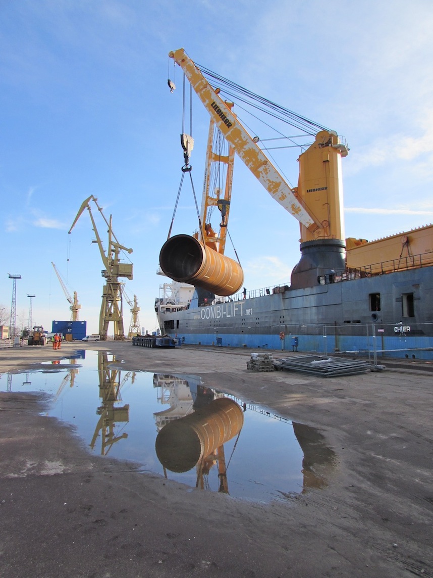Przypomnijmy, że 91 platform pośrednich w fabryce spółki Bilfinger Mars Offshore zamówiła firma DONG Energy. Kontrakt dotyczy produkcji i magazynowania. Ma być wykonany do końca tego roku, a pierwszy załadunek gotowych elementów planowany jest na czerwiec. Na razie na nabrzeżu Kaszubskim w minioną niedzielę trwał… wyładunek ogromnych rur, które do fabryki przywiózł z Rostocku statek „Palabora”.