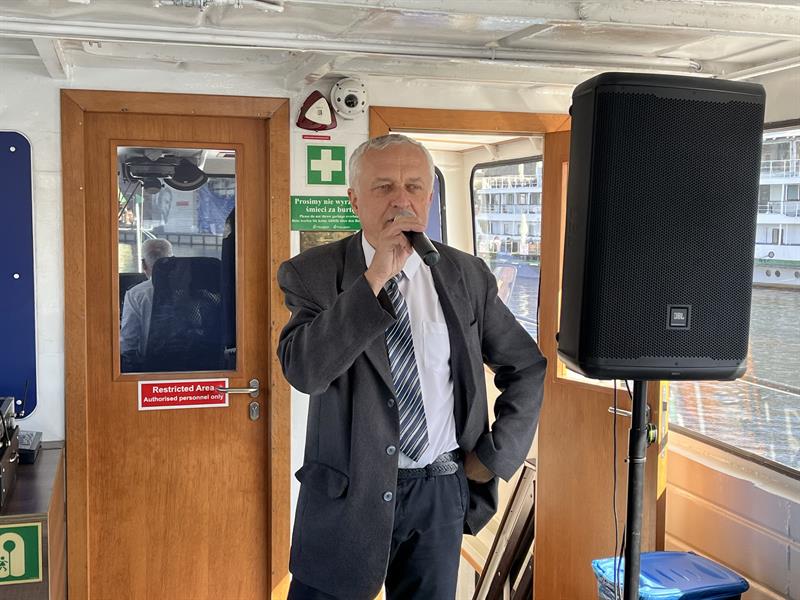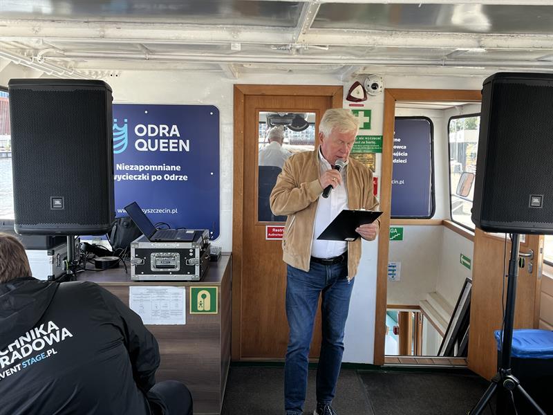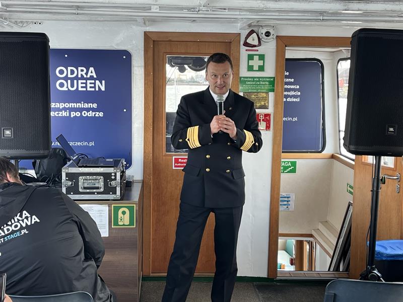 Na początku półtoragodzinnego rejsu Cezary Sylwestrzak, przewodniczący Rady zachodniopomorskiego oddziału KIGM, przeczytał przesłanie sekretarza generalnego Międzynarodowej Organizacji Morskiej (IMO) Arsenia Domingueza.