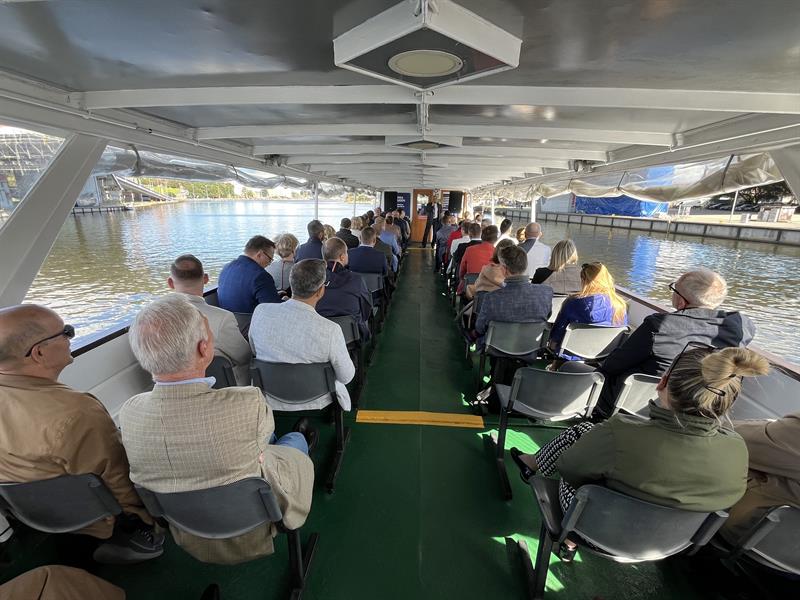 Uczestnicy rejsu „Odrą Queen” płynęli przy nabrzeżach spółki Finomar, Stoczni Szczecińskiej „Wulkan”, Morskiej Stoczni Remontowej „Gryfia” i szczecińskiego portu. Przedstawiciele firm i instytucji przedsiębiorstw mówili o ich bieżącej działalności oraz o prowadzonych i planowanych inwestycjach.
