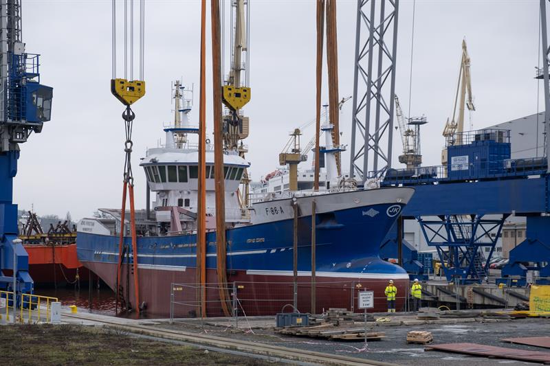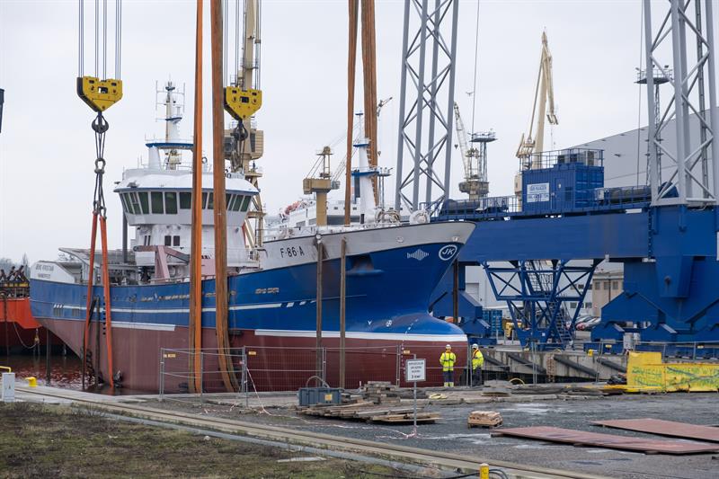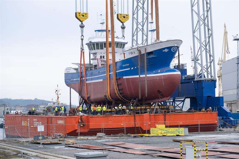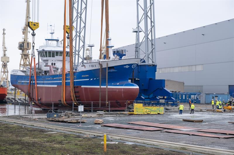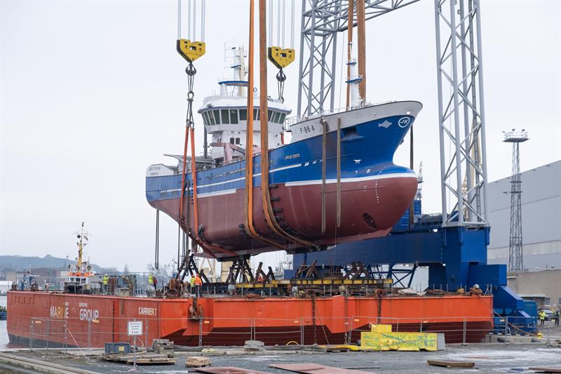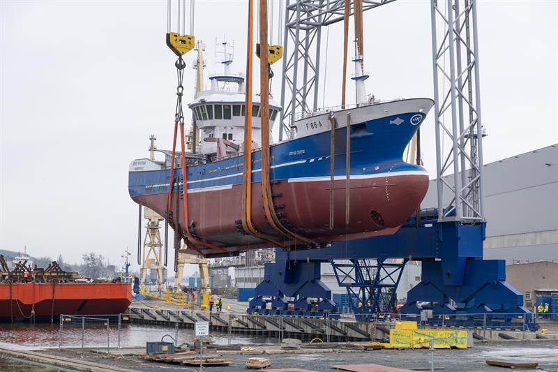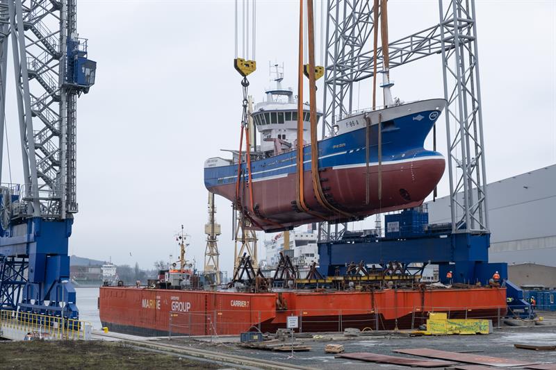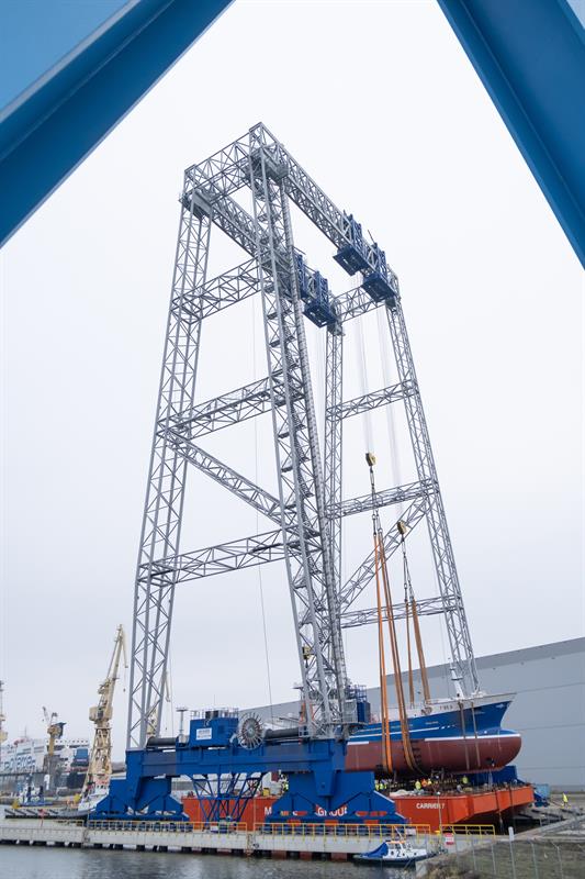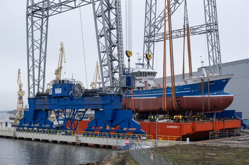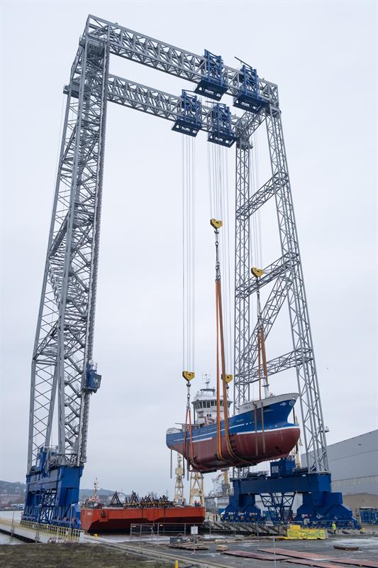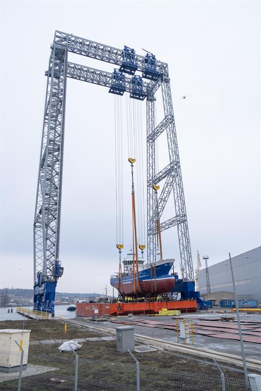 Kuter został w poniedziałek (4 lutego) przeholowany na pontonie „Carrier-7”, należącym do firmy Marine Crane, od nabrzeża Arsenał do pirsu przy nabrzeżu Mazowieckim. We wtorek jednostkę pomogła zwodować najwyższa w Europie suwnica należąca do ST3 Offshore. Ma ona 120 metrów wysokości i 1400 ton udźwigu. W tej roli wystąpiła po raz pierwszy. Urządzenie służy bowiem do transportu i załadunku na pontony konstrukcji wyprodukowanych w fabryce ST3 Offshore.