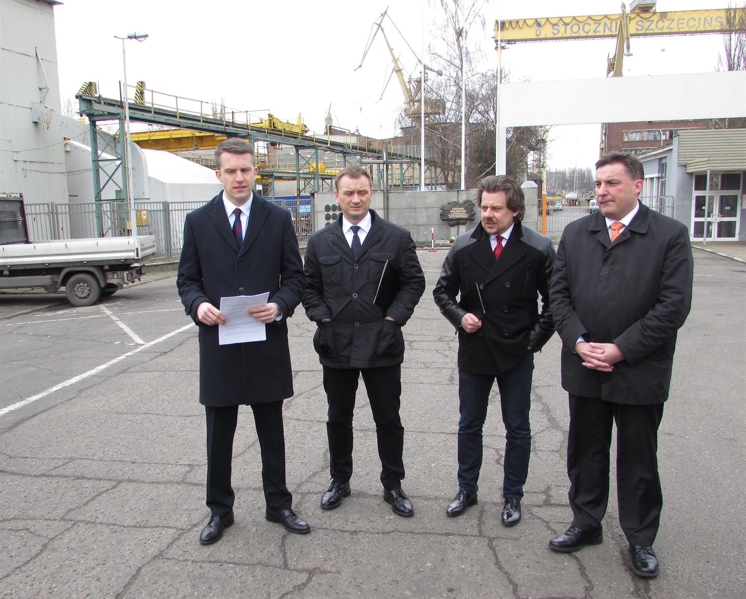 – Witamy na nietuzinkowej konferencji – rozpoczął spotkanie przed bramą dawnej Stoczni Szczecińskiej Piotr Misiło, poseł Nowoczesnej. – Jesteśmy tu wszyscy jako opozycja parlamentarna, bo i temat jest szalenie ważny.